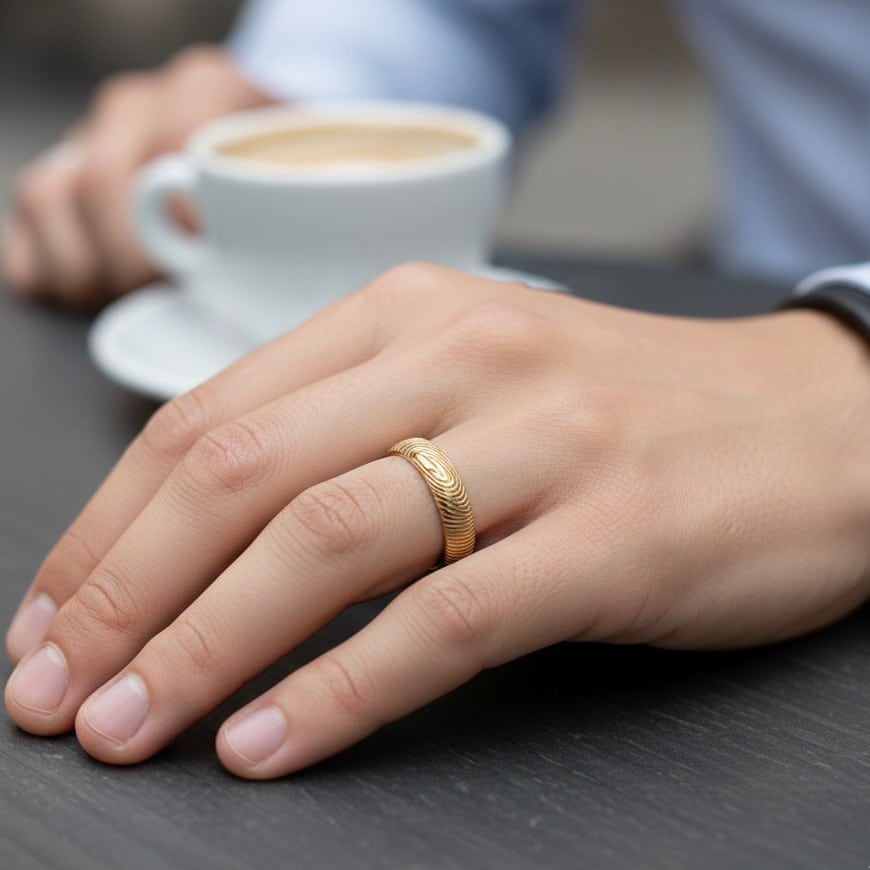 La alianza de oro amarillo con huella dactilar no solo simboliza la unión de dos personas, sino también un compromiso con la calidad y el diseño personalizado. Esta joya será un recuerdo eterno de tu historia de amor.
