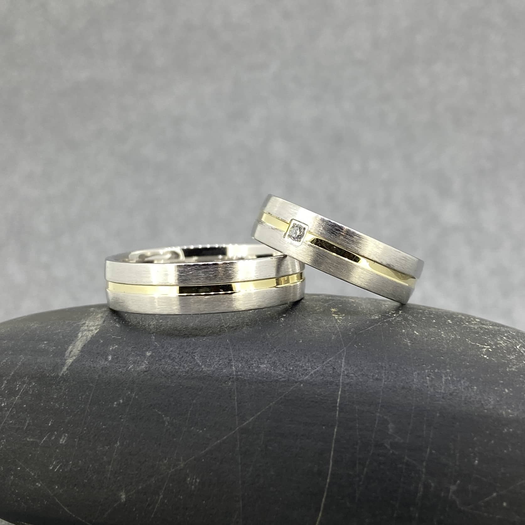 💍 Alianzas de plata y oro sintetizado minimalistas con línea central