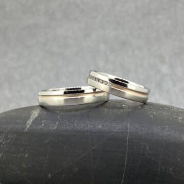 Elegantes, modernas y con un equilibrio perfecto entre tradición y diseño contemporáneo. Estas alianzas de boda, disponibles en nuestra joyería en Zaragoza, están elaboradas en plata 925 y realzadas con un carril central en oro rosa sintetizado de 14k, que aporta un contraste cálido y sofisticado.