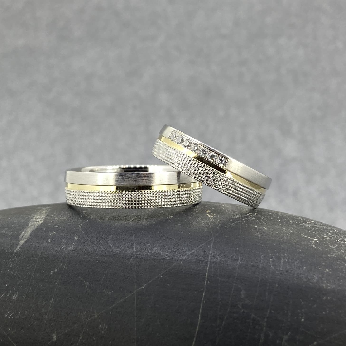 🤍 Alianzas de plata y oro sintetizado con relieve — Diseño con carácter único