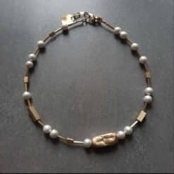 Collar de plata chapada de diseño exclusivo con perlas y motivos geométricos.