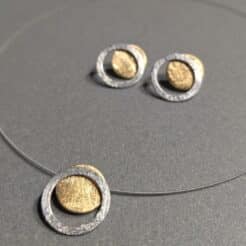 - Materiales: Plata, plata chapada en oro y sirga de acero.
