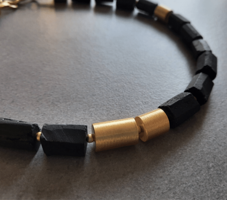 Plata de ley con chapado en oro y genuinas turmalinas negras en semi bruto.