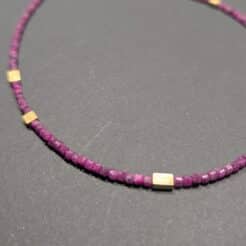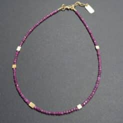 Collar sencillo de rubíes naturales con piezas de plata chapada en oro.