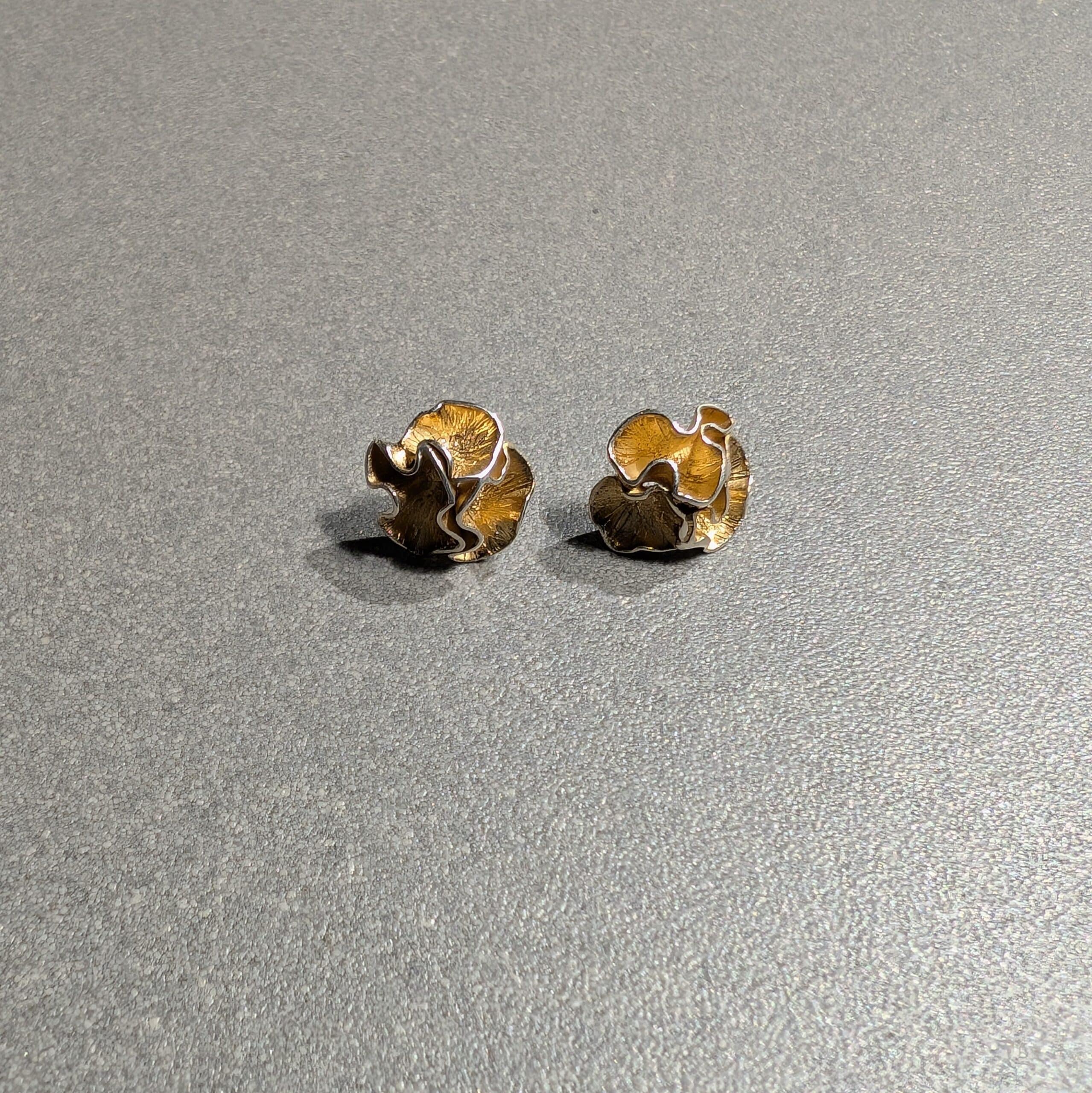 Pendientes de plata chapada en oro tipo botón con forma de flor de té.